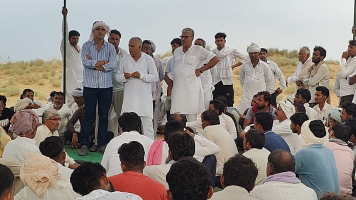 मृतक के परिजन व ग्रामीण सुबह से घटनास्थल पर धरना लगाकर बैठे है। धरने पर क्षेत्र के नेता विक्रम स्वामी, प्रभुदयाल सारस्वत, सुभाष सियाग सहित बड़ी संख्या में ग्रामीण मौजूद है। 20 घंटे बाद भी शव तारों पर ही झूल रहा है और ग्रामीणों में आक्रोश भर गया है। ग्रामीणों ने रोष जताते हुए किसी सक्षम अधिकारी के वार्ता के लिए भी नहीं आने का आरोप लगाते हुए प्रशासन को संवेदनहीन बताया। ग्रामीण एक स्वर में परिवार को न्याय देने की मांग कर रहें है।