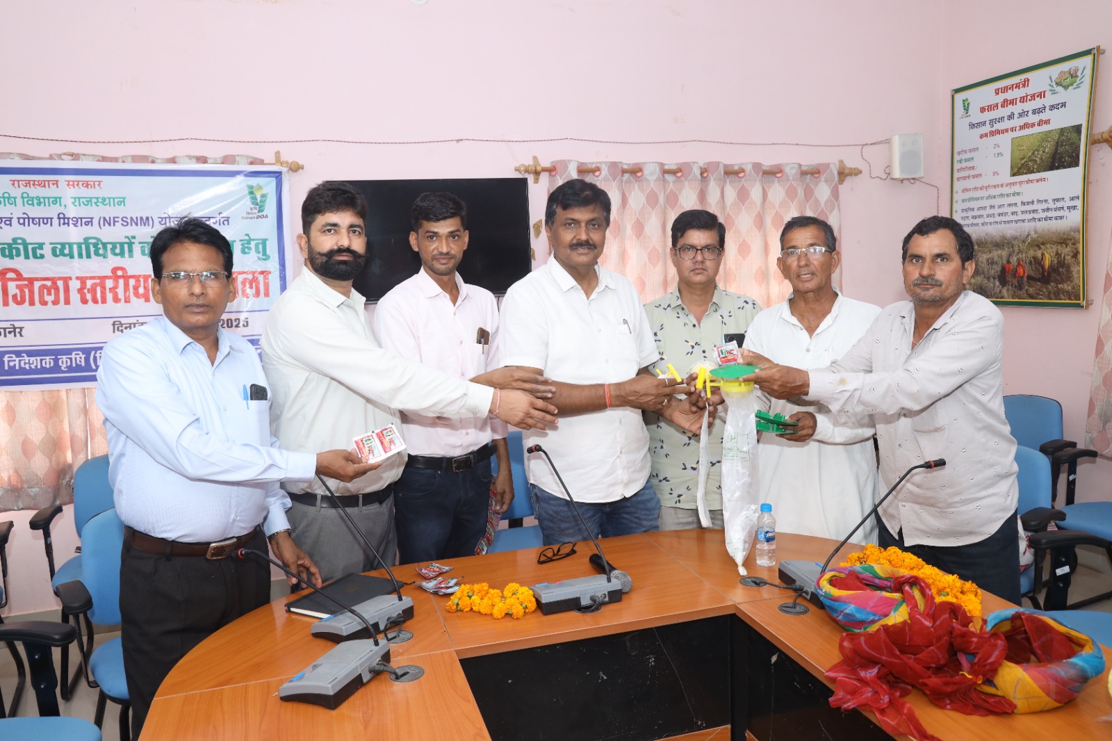 विनय एक्सप्रेस समाचार, बीकानेर। कृषि विभाग बीकानेर द्वारा राष्ट्रीय खाद्य सुरक्षा एवं पोषण मिशन योजना अंतर्गत आज कपास फसल में कीट व्याधियों के प्रबन्धन हेतु जिला स्तरीय कार्यशाला आत्मा सभागार कृषि भवन बीकानेर में माननीय मोडाराम जी मेघवाल जिला प्रमुख, श्रीमान राजकुमार जी कस्वा प्रधान बीकानेर पंचायत समिति, श्रीमान तोलाराम जी कुकणा अध्यक्ष सरपंच संघ व महामंत्री बीजेपी संगठन, श्रीमान शिवलाल जी सरपंच हुंसगसर के आतिथ्य में आयोजित की गई। कृषि आयुक्तालय, जयपुर के निर्देश अनुसार बीटी कॉटन में लगने वाले गुलाबी सुंडी रोग से बचाव के लिए किसानों को इस रोग के प्रकोप के निगरानी, नियंत्रण के संबंध में विशेष जानकारी दी जाने हेतु जिला स्तरीय कार्यशाला आयोजित की गई उत्तरोत्तर ग्राम पंचायत स्तर पर जागरूकता कार्यक्रम आयोजित किये जाने है। इसी क्रम में कृषि अधिकारियों, प्रगतिशील कृषकों व जीनिंग मिल मालिकों को प्रशिक्षित करने के उद्देश्य से जिला स्तरीय कार्यशाला आयोजित की गई। सहायक निदेशक उद्यान मुकेश गहलोत ने बताया कि विगत दो वर्षों से कृषि विभाग द्वारा इस प्रकार की कार्यशाला का आयोजन जिला, ब्लॉक व ग्राम पंचायत स्तर पर व्यापक रूप से किया जा रहा है इसी का परिणाम रहा कि जिले में बीटी कपास का क्षेत्रफल तेजी से बढ़ा है।