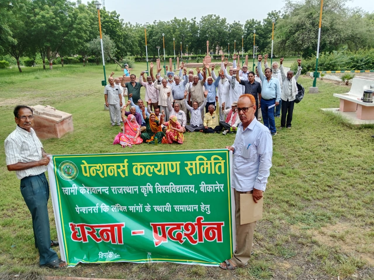 विनय एक्सप्रेस समाचार, बीकानेर। स्वामी केशवानन्द राजस्थान कृषि विश्वविद्यालय, बीकानेर के पेन्शनरों ने पेन्शन कल्याण समिति के ध्वज तले अध्यक्ष श्री मनफूल मांगलिया के नेतृत्व में आज दिनांक 31.07. 2025 से विश्वविद्यालय कुलगुरु सचिवालय के समक्ष अपनी निम्न पांच सूत्री मांगों यथा 22 माह की लंबित पेंशन का भुगतान, महंगाई भत्ते की दर 55% लागू करना, बढ़ी हुई राशि का लंबित भुगतान, सेवा निवृत्ति उपरांत भुगतानों में देरी एवं पेंशन कोष का विवरण एवं बकाया भुगतान के समर्थन में प्रशासन के साथ कई दौर की वाताएं विफल होने के पश्चात् विवशताधीन अनिश्चित कालीन धरना प्रदर्शन आरम्भ किया ।