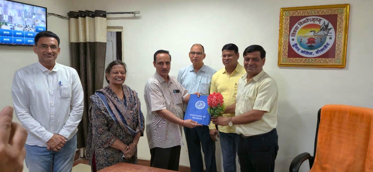 विनय एक्सप्रेस समाचार, बीकानेर। जी.सी.आर.सी. राजकीय डूंगर कॉलेज, बीकानेर के प्रोफेसर डॉ. नरेंद्र भोजक को मार्लीन विश्वविद्यालय से डी.एससी. (मानद) की उपाधि प्रदान की गई है। डॉ. एरिक हैरी इमैनुएल – कुलाधिपति और डॉ. टिमोथी विलियम्स – कुलपति और सिंडिकेट की अनुशंसा पर मार्लीन विश्वविद्यालय के रजिस्ट्रार डॉ. रैफर्टी हैमिश द्वारा डी.एससी. प्रदान की गई। यह राजकीय डूंगर कॉलेज से पहली डी.एससी. उपाधि है।