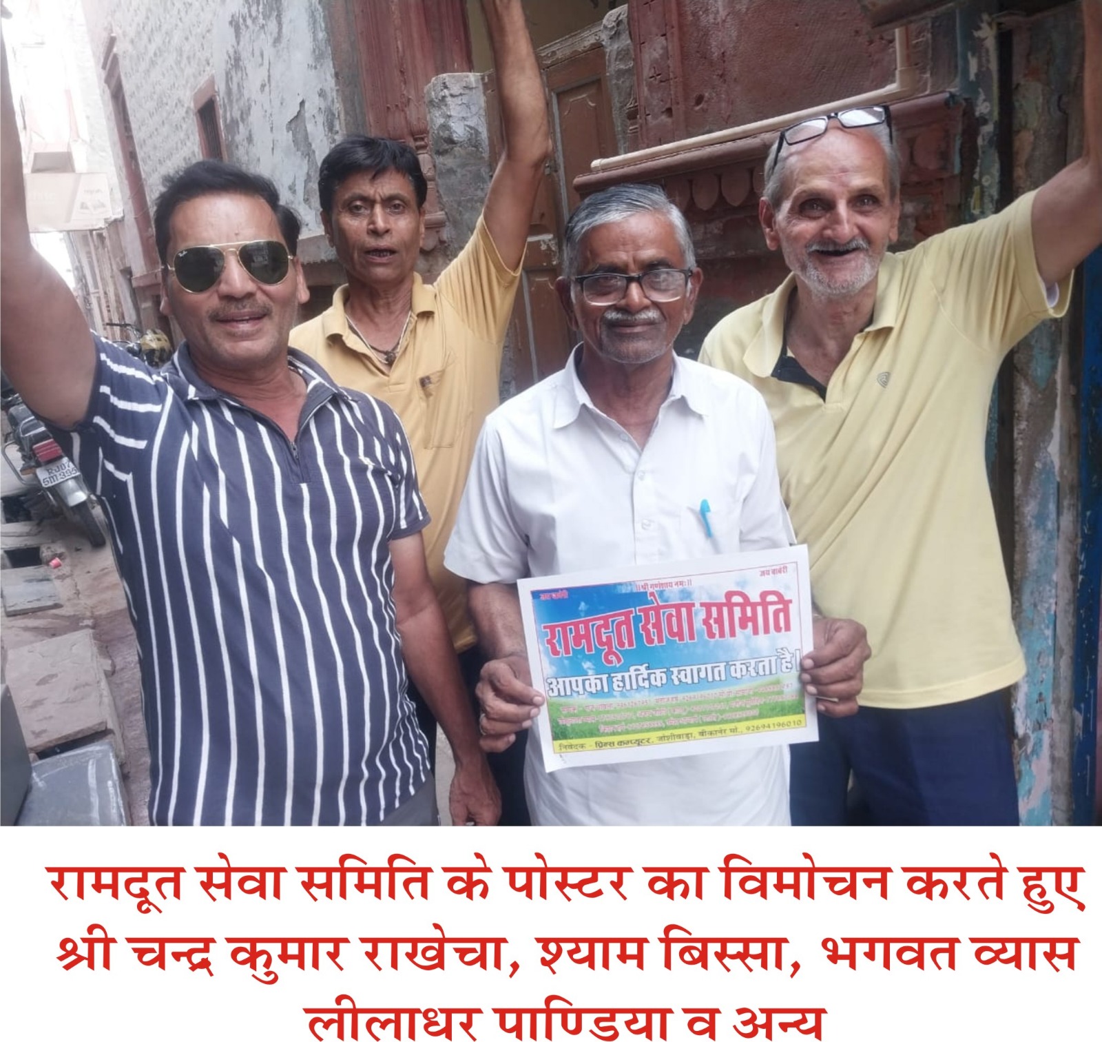 सेवा रवानगी से पूर्व आज पोस्टर का लोकार्पण चन्द्र कुमार राखेचा वरिष्ठ प्रेस फोटोग्राफर जय गोपाल बिस्सा, समाज सेवी भगवत व्यास एवं लीलाधर पांडिया ने किया।