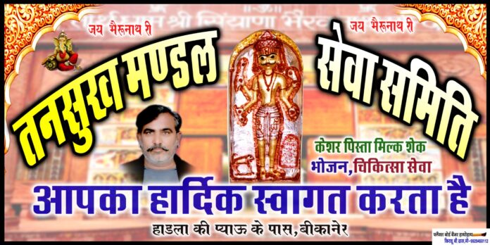 विनय एक्सप्रेस समाचार, बीकानेर। नथानियों की सराय, रंगो की गली नं. 2 की तनसुख मंडल सेवा समिति द्वारा सियाना भैरव यात्रा के अवसर पर 28 अगस्त 2025 को ऋषि पंचमी के दिन हाड़ला की प्याऊ पर एक भव्य सेवा का आयोजन किया जाएगा। पिछले 25 वर्षों से निरंतर आयोजित यह सेवा कार्यक्रम भक्तों को आध्यात्मिक और शारीरिक लाभ प्रदान करने के उद्देश्य से आयोजित किया जाता है।