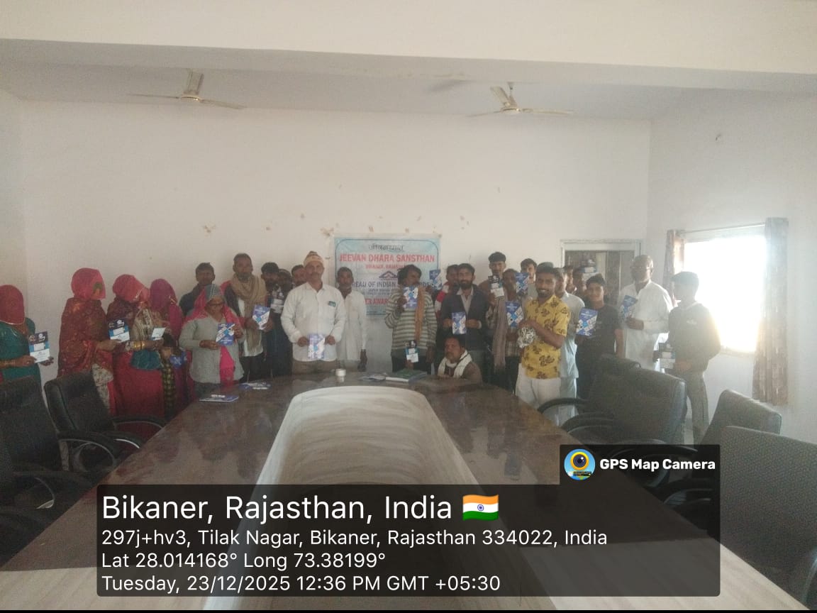 विनय एक्सप्रेस समाचार, बीकानेर. ग्राम पंचायत हुसंगसर, जिला बीकानेर में आज दिनांक 23 दिसंबर को भारतीय मानक ब्यूरो (BIS) एवं जीवन धारा संस्थान के संयुक्त तत्वावधान में एक उपभोक्ता जागरूकता कार्यक्रम का सफल आयोजन किया गया।