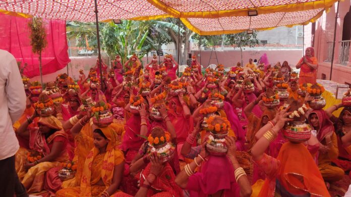 विनय एक्सप्रेस समाचार, बीकानेर. शांतिकुंज हरिद्वार के तत्वावधान में तिलक नगर क्षेत्र में आयोजित नौ कुंडीय गायत्री महायज्ञ का शुभारंभ आज अत्यंत भव्य और उत्साहपूर्ण कलश यात्रा के साथ हुआ। वृद्ध हनुमान मंदिर से शुरू हुई यह यात्रा भक्तिमय माहौल में आगे बढ़ी, जिसमें सैकड़ों श्रद्धालु शामिल हुए।
