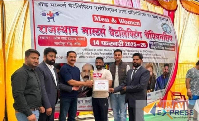 विनय एक्सप्रेस समाचार, बीकानेर। हरियाणा के लोहारू में आयोजित राष्ट्रीय वेटलिफ्टिंग चैंपियनशिप (मास्टर्स कैटेगरी) में बीकानेर के व्यवसायी और फिटनेस प्रेमी गिरिराज व्यास ने शानदार प्रदर्शन करते हुए स्वर्ण पदक जीतकर शहर का नाम पूरे देश में रोशन कर दिया।