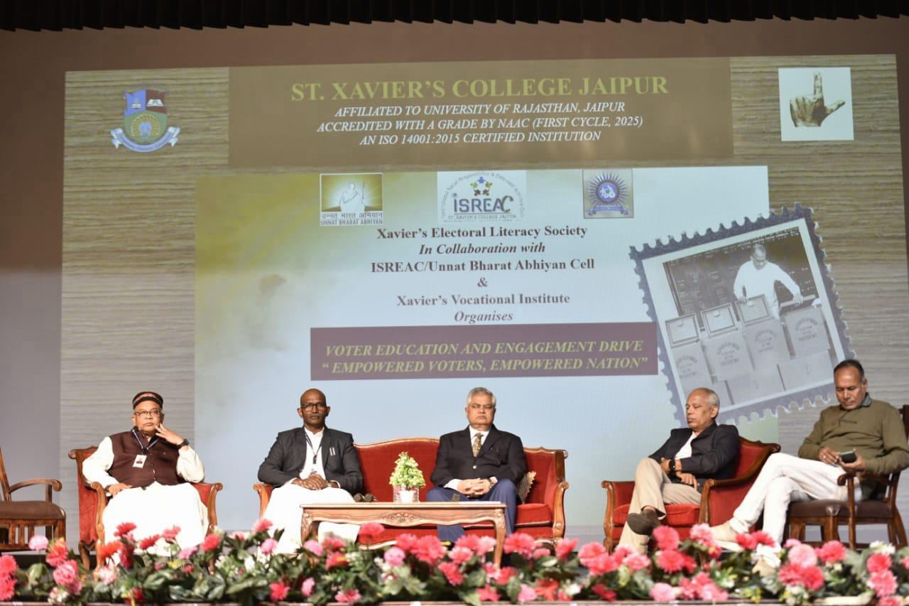 यह प्रेरक संदेश दिया राजस्थान राज्य निर्वाचन आयुक्त श्री राजेश्वर सिंह ने आज सेंट ज़ेवियर्स कॉलेज, जयपुर में “मतदान का अधिकार : जनतंत्र का आधार” विषयक युवा गोष्ठी को संबोधित करते हुए। ज़ेवियर्स इलेक्टोरल लिटरेसी सोसायटी, उन्नत भारत अभियान एवं ज़ेवियर्स वोकेशनल इंस्टीट्यूट के संयुक्त तत्वावधान में आयोजित इस कार्यक्रम में सैकड़ों युवा शामिल हुए।
