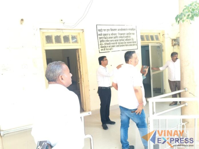 विनय एक्सप्रेस समाचार, फलोदी। जिला कलक्टर अंकित कुमार सिंह ने सोमवार को उपखंड कार्यालय फलौदी,तहसील व कोषाधिकारी कार्यालयों का औचक निरीक्षण करते हुए व्यवस्थाएं जांची। इस दौरान उन्होंने कार्यालयों की विभिन्न शाखाओं में किए जा रहे कार्यों की प्रगति लेते हुए लंबित कार्यों का समय पर निस्तारण करने के निर्देश दिए।